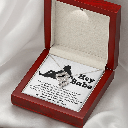 Hey Babe, Im Not The Most Romantic Guy Ever, Valentines Double Heart Necklace, Valentines Funny Gift For Her!