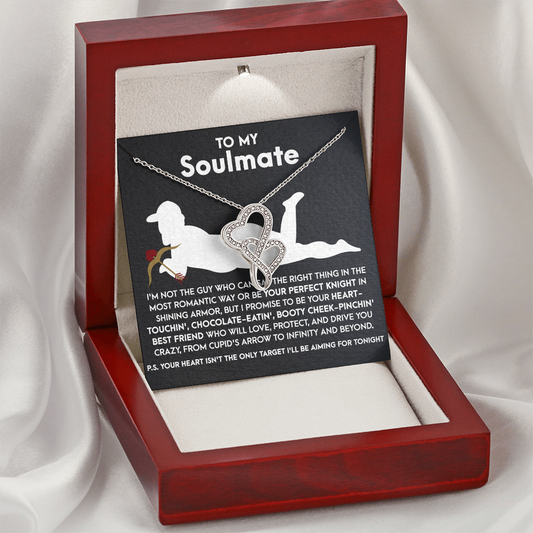 To My Soulmate, Valentines Double Heart Necklace, Valentines Funny Gift For Her!