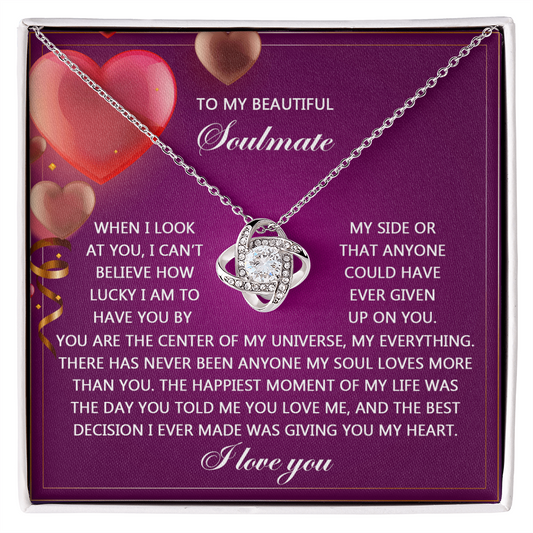 To My Beautiful Soulmate, A Loving Thought Of You Is Always In My Heart, Love Knot Necklace, Valentines Gift For Her
