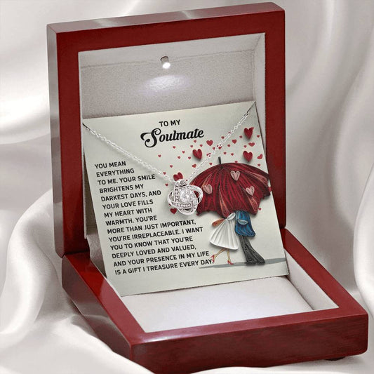 To My Soulmate, You Mean Everything To Me, Love Knot Necklace, Valentines Gift For Her