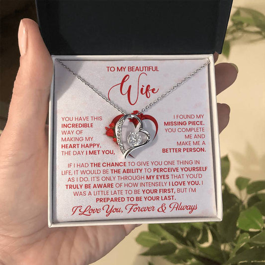 To My Beautiful Wife, You Make My Heart Happy, Forever Love Heart Necklace Message Card