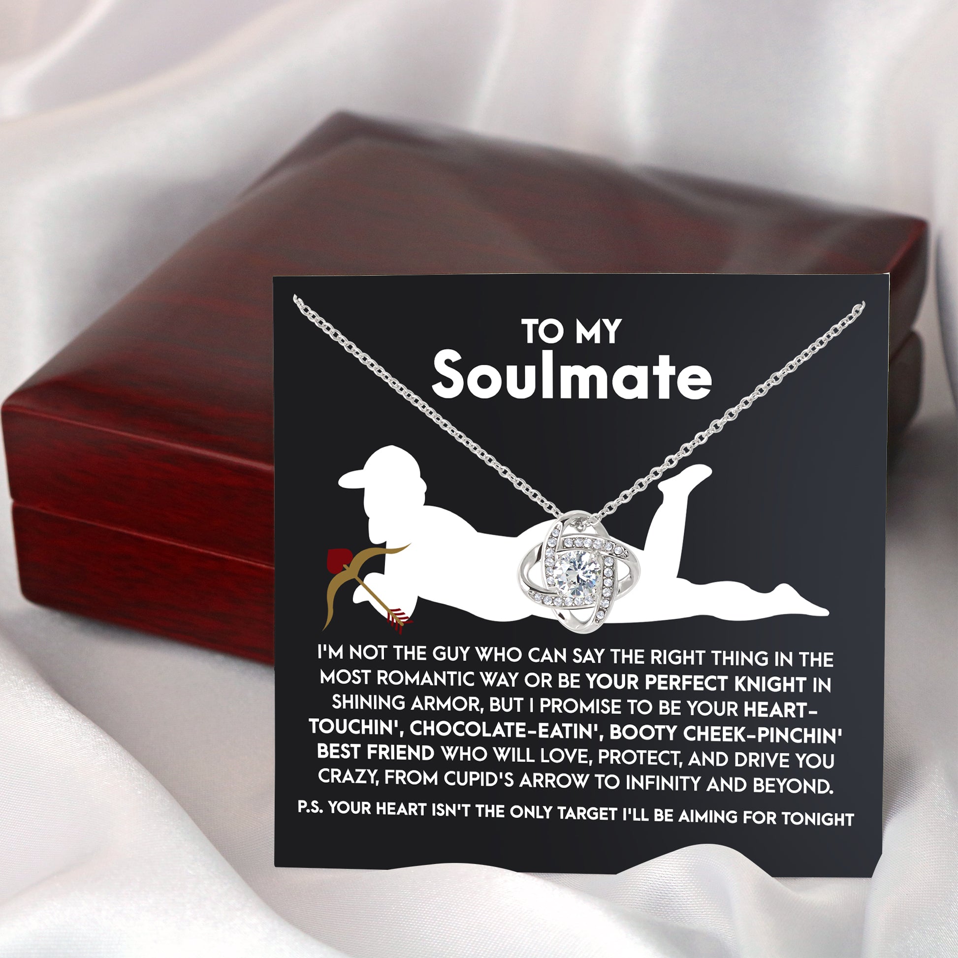 To My Soulmate, I Promise To Be Your Heart Touchin' Booty Cheek-Pinching Best Friend.., Love Knot Necklace, Valentines Gift For Her