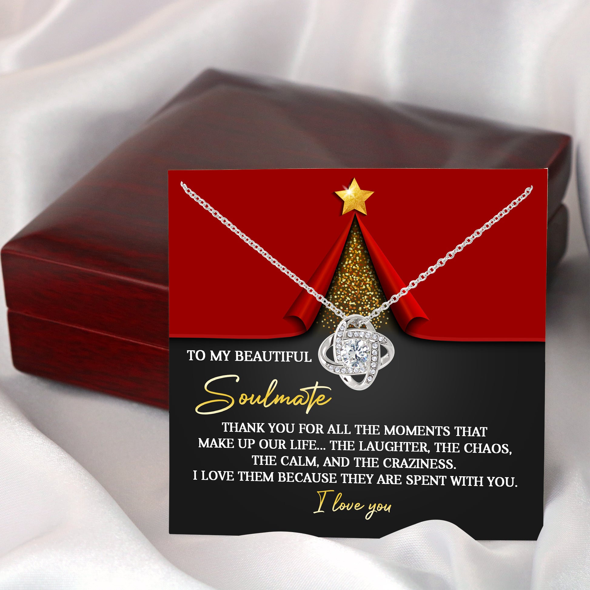 To My Soulmate, Thank You For All The Moments That Make Up Our Life, Love Knot Necklace, Christmas Gift For Her