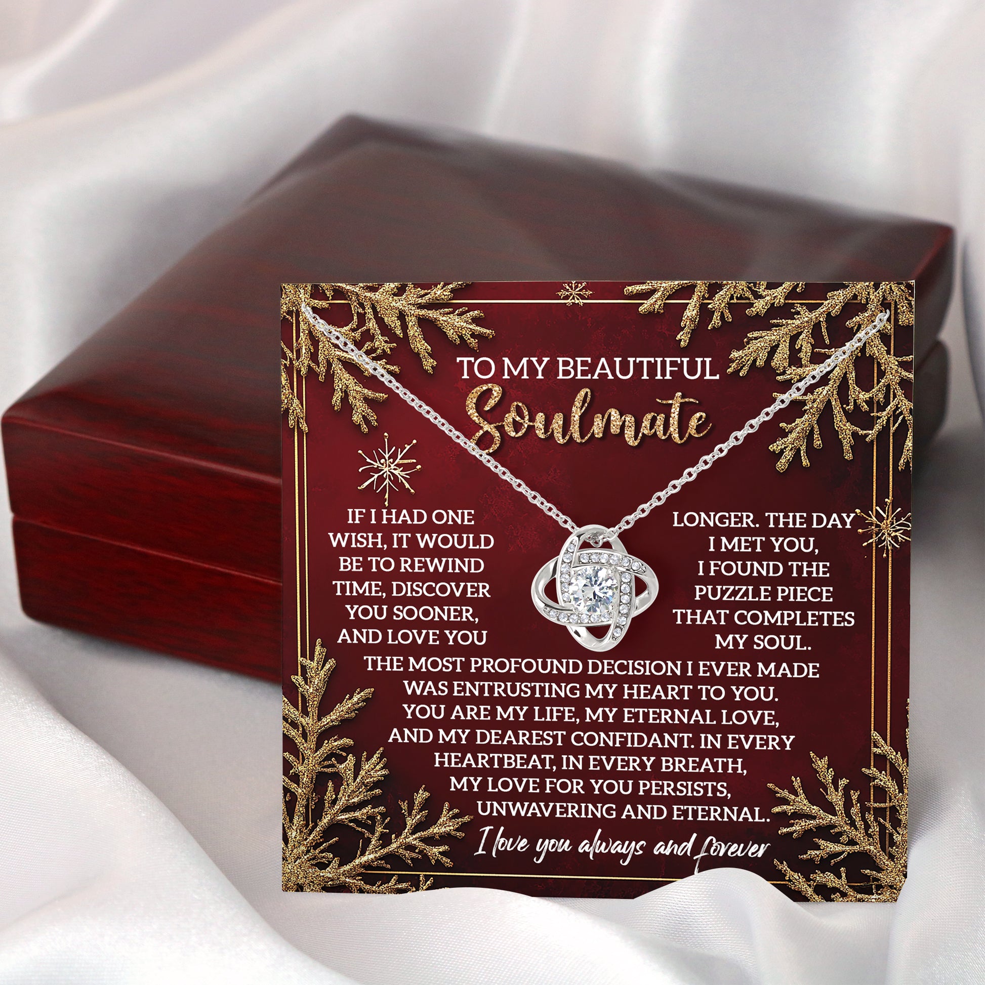 To My Soulmate, The Day I Met You I Found The Puzzle Piece That Completes My Soul, Love Knot Necklace, Gift For Her