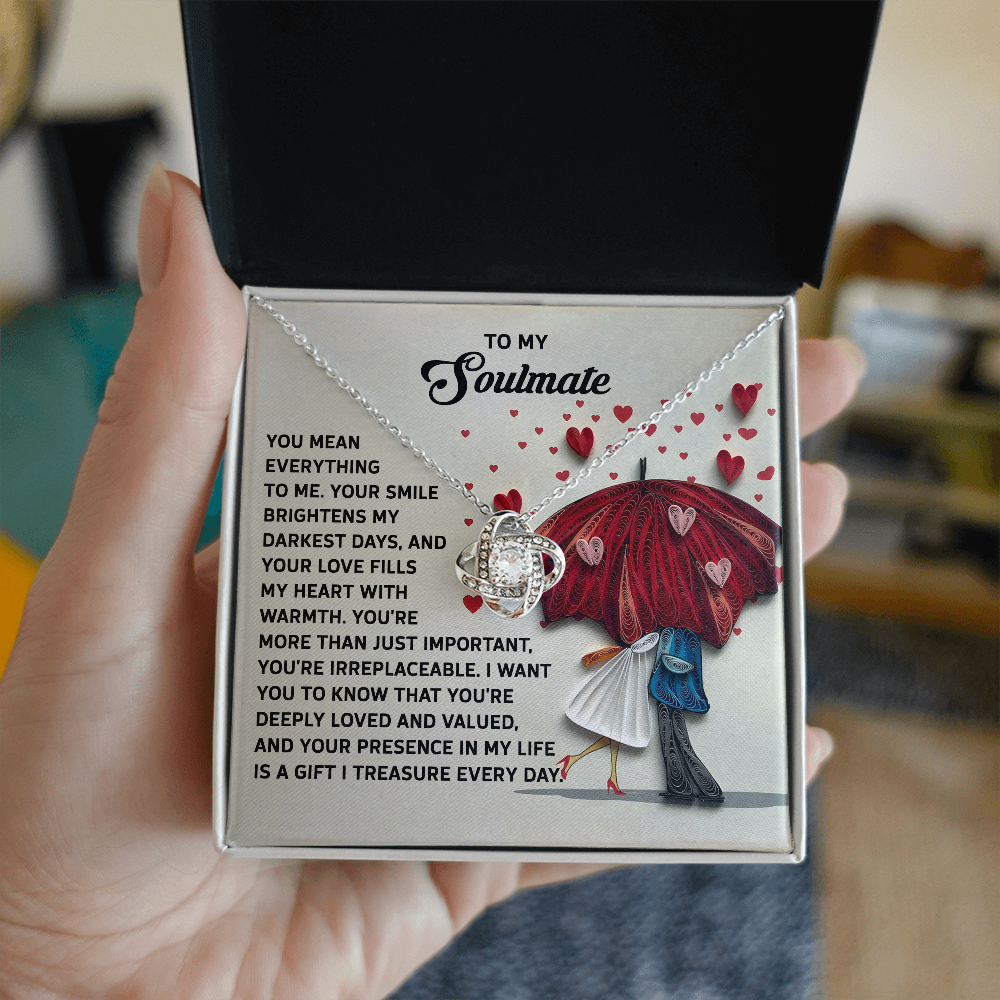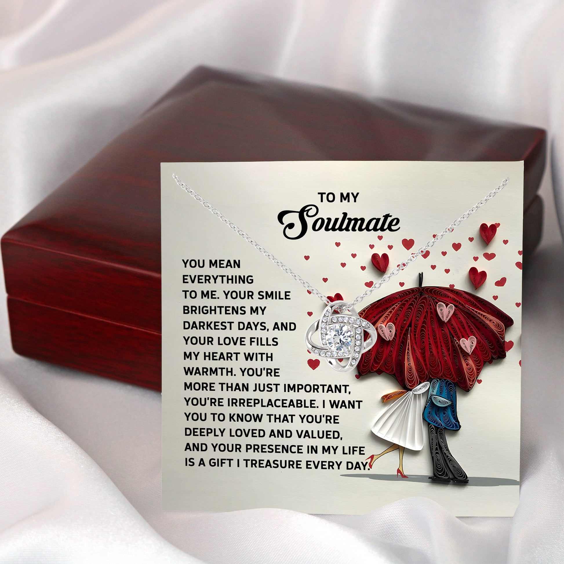 To My Soulmate, You Mean Everything To Me, Love Knot Necklace, Valentines Gift For Her
