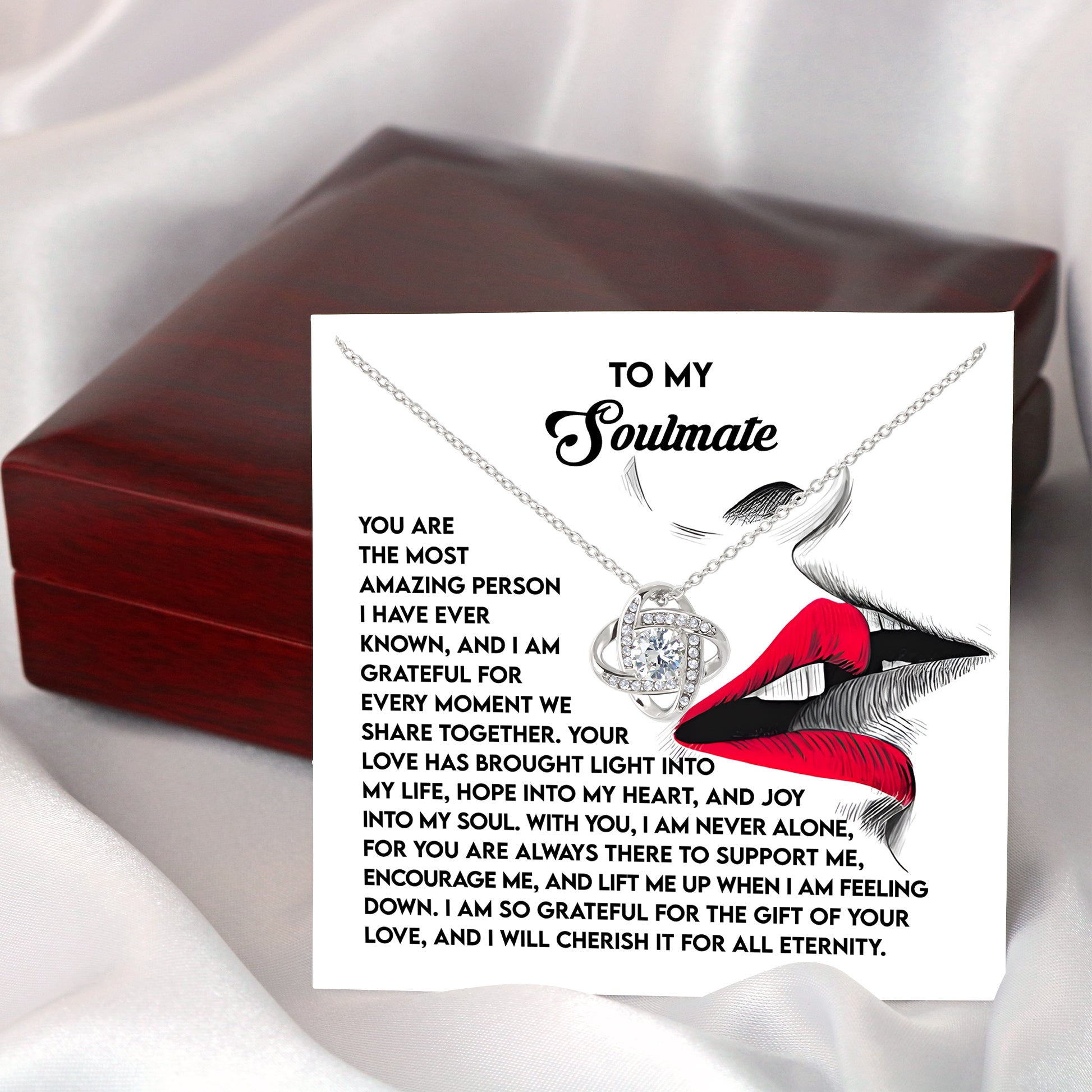 To My Soulmate, Your Love Has Brought Light Into My Life, Love Knot Necklace, Valentines Gift For Her