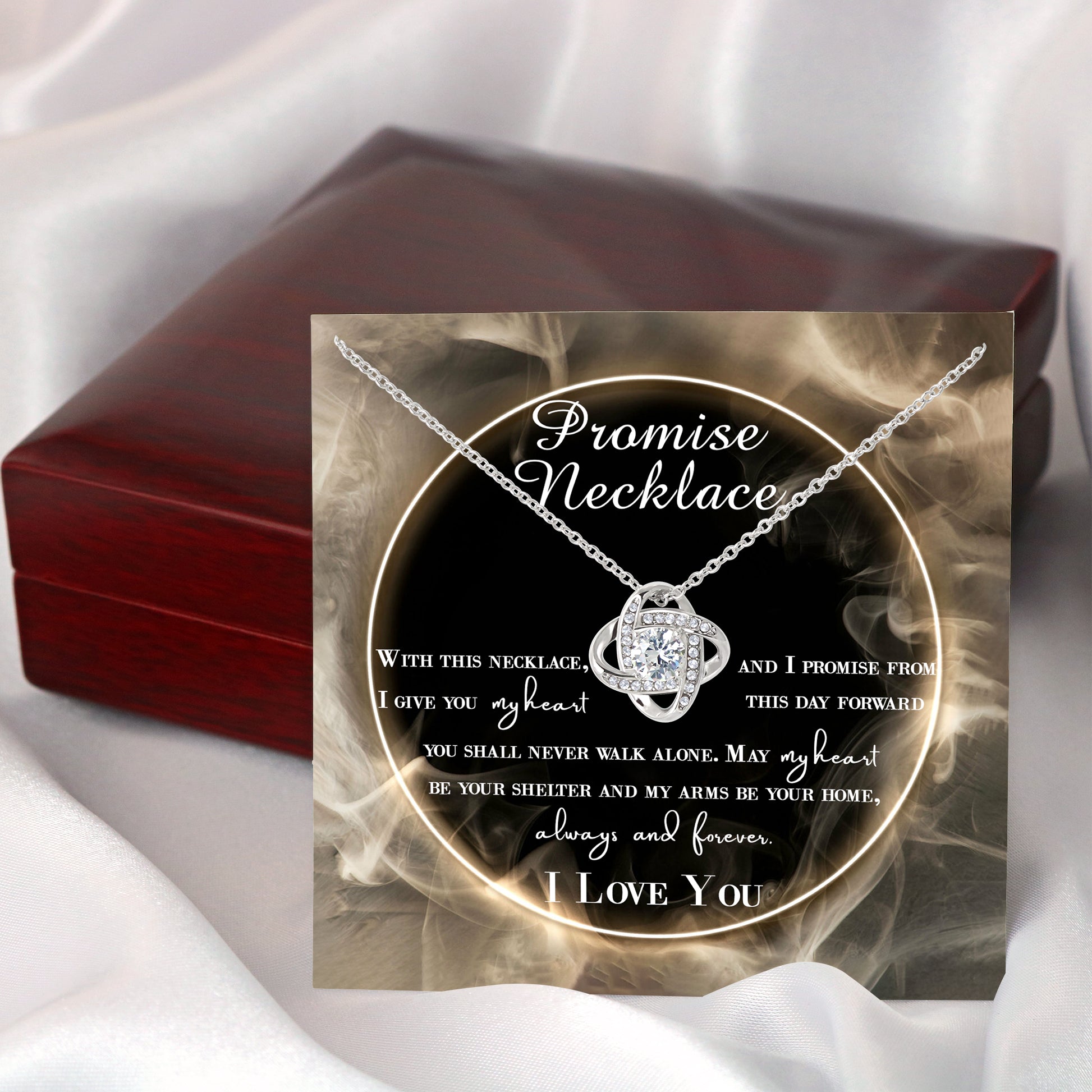 To My Wife, Promise Necklace, May My Heart Be Your Shelter And My Arms Be Your Home, Love Knot Necklace